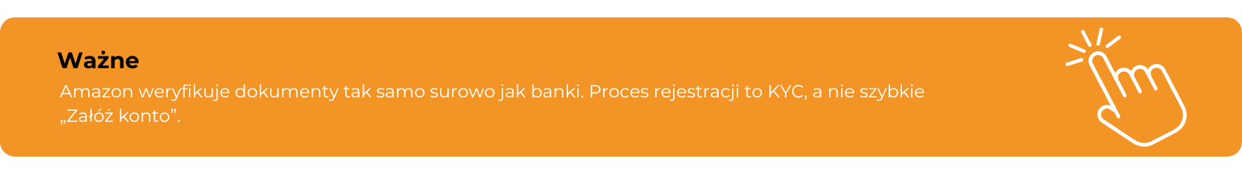 Rejestracja konta w Amazon Seller Central to moment, w którym zaczyna się prawdziwy kontakt z platformą — i dla większości nowych sprzedawców bywa ona większym wyzwaniem, niż się spodziewali. Amazon traktuje sprzedawców jak podmioty gospodarcze, które muszą zostać zweryfikowane podobnie jak klienci banków podczas procedury KYC. To nie jest szybkie założenie konta na marketplace, ale formalny proces mający potwierdzić, że firma istnieje, dane są spójne, a osoba rejestrująca ma do tego realne uprawnienia. Im lepiej przygotujesz dokumenty, tym szybciej przejdziesz tę część i będziesz mógł skupić się na produktach.