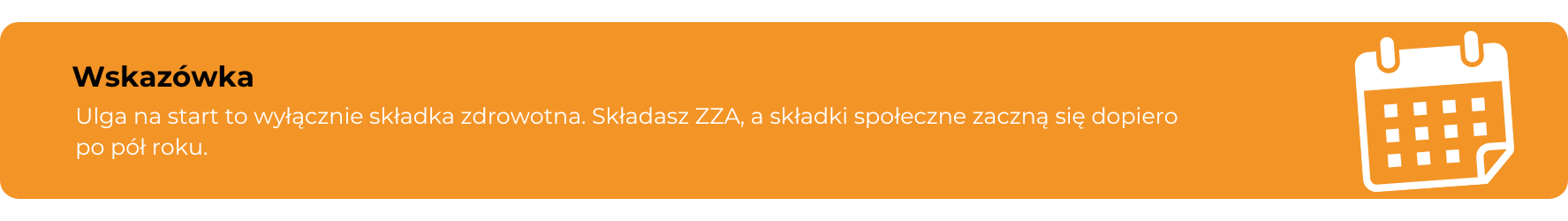 Najbardziej przyjaznym rozwiązaniem dla początkujących jest ulga na start. Przez pierwsze sześć pełnych miesięcy prowadzenia działalności nie płacisz składek społecznych, a jedynie składkę zdrowotną. To realnie obniża koszty w pierwszym okresie, który w e-commerce zwykle jest intensywny inwestycyjnie — reklamy, towar, oprogramowanie, sesje zdjęciowe, przygotowanie logistyki. Ulga na start działa automatycznie pod warunkiem, że zgłosisz się do ZUS na formularzu ZZA, a nie ZUA, bo tylko wtedy system rozpozna, że chcesz korzystać wyłącznie ze składki zdrowotnej.