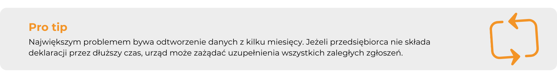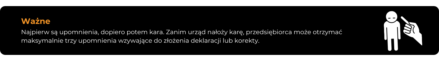 Samo opóźnienie w złożeniu deklaracji nie jest jeszcze podstawą do nałożenia kary. Sankcja może pojawić się dopiero wtedy, gdy przedsiębiorca nie złoży zgłoszenia mimo otrzymanych upomnień.