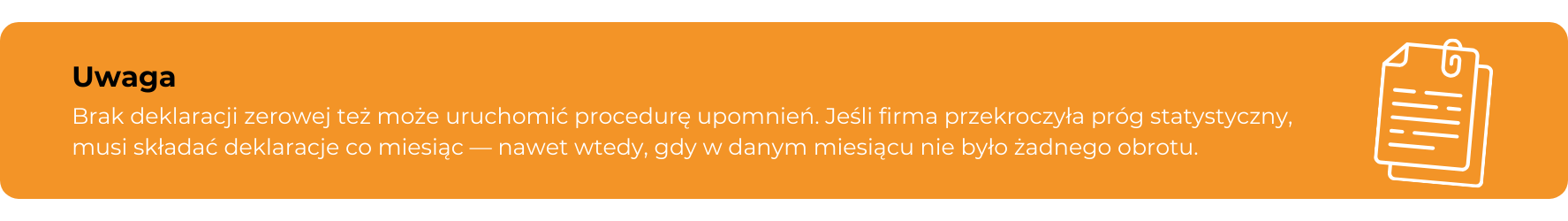 Warto też pamiętać o sytuacji, która często zaskakuje przedsiębiorców. Jeżeli firma przekroczyła próg statystyczny, ma obowiązek składania deklaracji także w miesiącach, w których nie doszło do faktycznego obrotu towarowego. W takiej sytuacji należy złożyć tzw. deklarację zerową. Brak takiego zgłoszenia również może uruchomić procedurę upomnień.