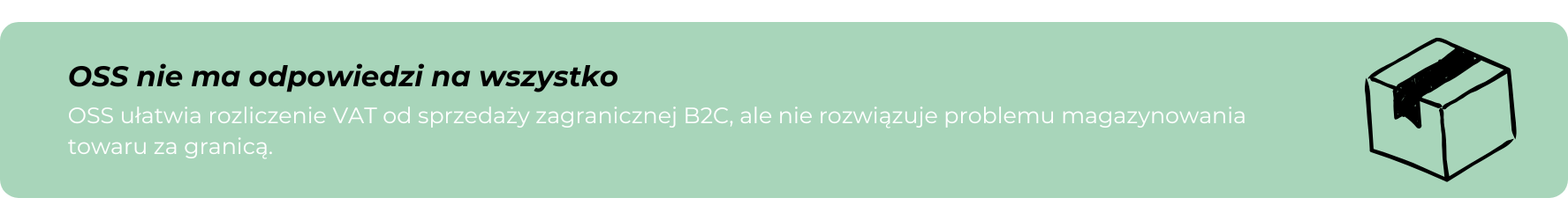 Sprzedaż B2C do innych krajów Unii liczy się do progów sprzedaży zagranicznej i może oznaczać konieczność rozliczeń w procedurze OSS. Warto przy tym pamiętać, że OSS nie rozwiązuje wszystkich problemów. Jeśli korzystasz z programów magazynowania towaru za granicą, takich jak fulfillment czy FBA, bardzo często powstaje obowiązek rejestracji VAT w kraju, w którym towar jest składowany, niezależnie od OSS.
