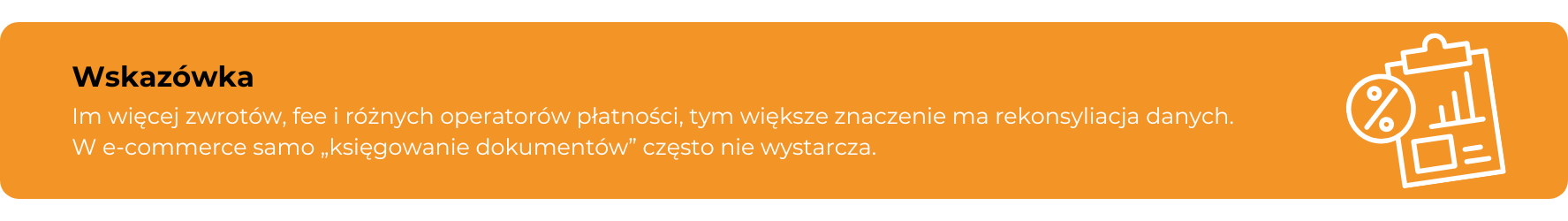 Zwroty są tu dobrym przykładem, bo w e-commerce nie są tylko zdarzeniem operacyjnym. Mogą wpływać na rozliczenia VAT, korekty przychodu, a przy sprzedaży objętej OSS również na korekty w tych rozliczeniach. To pokazuje, że reconciliation płatności w sklepie internetowym to nie tylko kontrola finansowa, ale czasem element poprawnych rozliczeń podatkowych.
