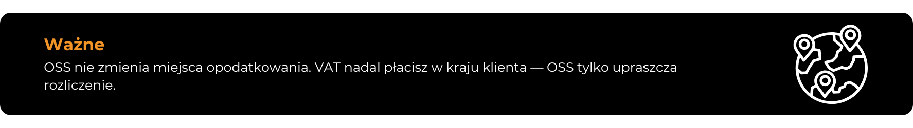 Warto przy tym pamiętać, że OSS nie zmienia miejsca opodatkowania, tylko upraszcza sposób jego rozliczenia. VAT nadal należy się w kraju konsumenta, ale Ty rozliczasz go przez jeden system zamiast wielu.