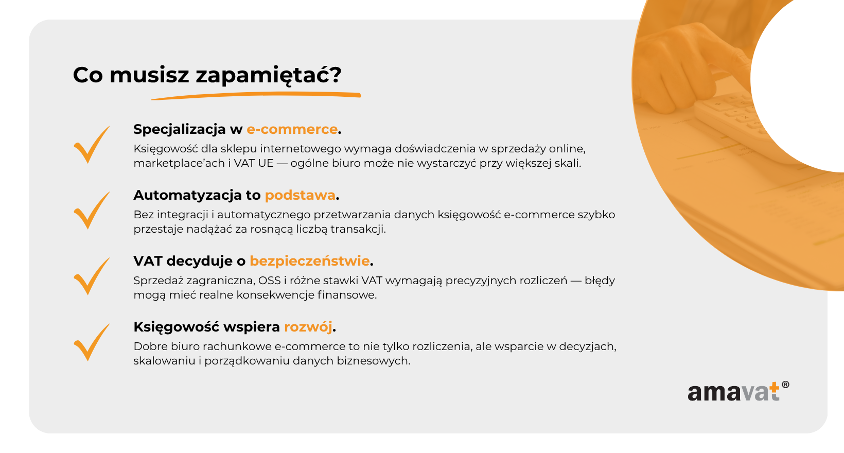 Specjalizacja w e-commerce to więc nie jest kwestia marketingu, tylko realnej przewagi operacyjnej. To coś, co przekłada się na porządek w danych, bezpieczeństwo podatkowe i możliwość skalowania biznesu bez chaosu w liczbach.