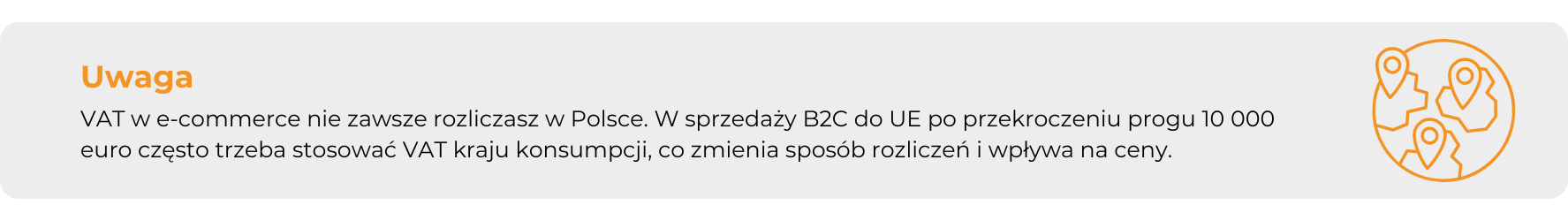 Już sama sprzedaż B2C za granicę, szczególnie w ramach WSTO, może oznaczać konieczność ustalenia miejsca opodatkowania i zastosowania właściwej stawki VAT. W określonych sytuacjach znaczenie ma również łączna wartość sprzedaży do innych krajów UE, ponieważ po przekroczeniu unijnego progu 10 000 euro dla części transakcji B2C co do zasady stosuje się VAT państwa konsumpcji. Warto przy tym pamiętać, że próg ten dotyczy łącznie wewnątrzwspólnotowej sprzedaży towarów na odległość (WSTO) oraz wybranych usług B2C, a poniżej tego limitu w określonych warunkach możliwe jest opodatkowanie w kraju siedziby.