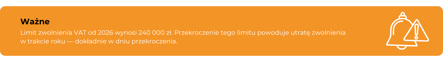 Dużo więcej wątpliwości pojawia się przy przekroczeniu limitu zwolnienia podmiotowego. Od 2026 roku wynosi on 240 000 zł, co w e-commerce wcale nie jest trudne do osiągnięcia. Kluczowe jest to, że utrata zwolnienia nie następuje „od następnego miesiąca”, tylko w konkretnym momencie — w dniu, w którym przekraczasz limit. I właśnie do tego momentu odnosi się obowiązek rejestracyjny. VAT-R powinien być złożony przed dniem utraty prawa do zwolnienia, a nie dopiero po jego przekroczeniu. To oznacza, że trzeba na bieżąco kontrolować poziom sprzedaży, bo reakcja po fakcie nie zmienia momentu, od którego powinieneś rozliczać VAT.