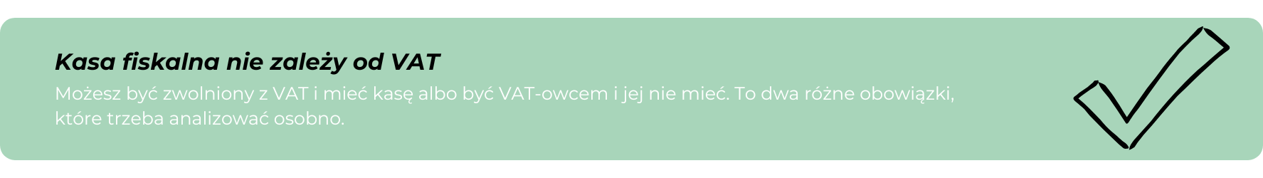 Warto też podkreślić, że obowiązek kasy fiskalnej nie zależy od tego, czy jesteś VAT-owcem. To, czy rozliczasz VAT w JDG, i to, czy musisz mieć kasę, to dwie niezależne kwestie, które trzeba analizować osobno.