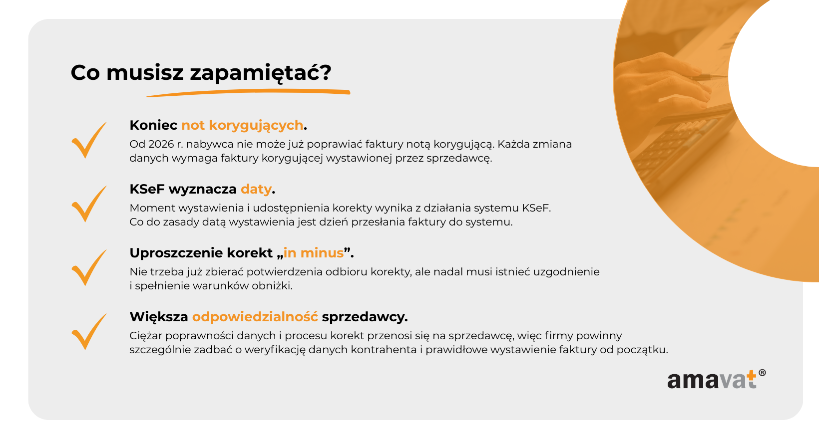 Dla młodych firm e-commerce oznacza to, że logika „dlaczego wystawiam korektę” pozostaje taka sama, ale sposób „jak i kiedy ją wystawiam oraz rozliczam” zaczyna działać według nowych reguł.