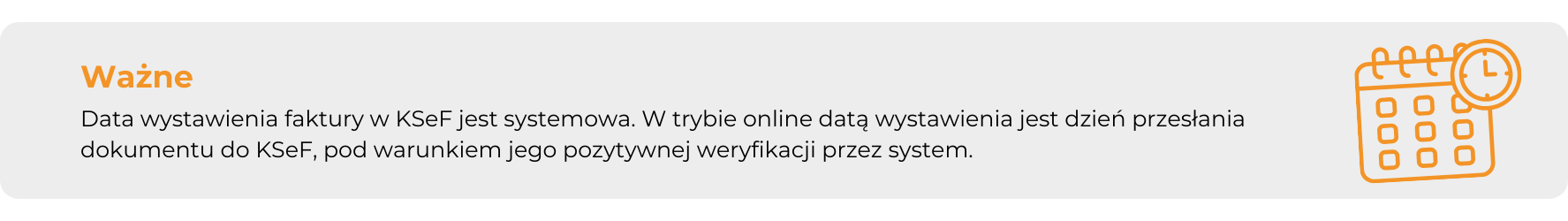 W trybie online co do zasady datą wystawienia faktury ustrukturyzowanej jest dzień jej przesłania do KSeF, czyli moment rejestracji na bramce systemu, nawet jeżeli numer identyfikujący zostanie technicznie nadany chwilę później. W trybach offline i offline24 obowiązują dodatkowe reguły związane z polem P_1, dlatego w szczególnych scenariuszach moment wystawienia może być ustalany według odrębnych zasad.