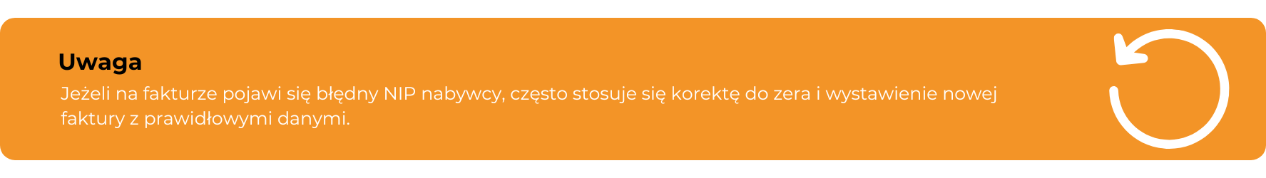 W przypadku błędnego NIP nabywcy sytuacja bywa bardziej złożona. Jeżeli identyfikacja strony transakcji jest nieprawidłowa, w praktyce często stosuje się korektę „do zera” faktury pierwotnej oraz wystawienie nowej faktury na właściwego nabywcę z prawidłowym NIP. To pokazuje, że niektóre błędy formalne mogą prowadzić do konieczności całkowitego „przepisania” transakcji od strony dokumentacyjnej.
