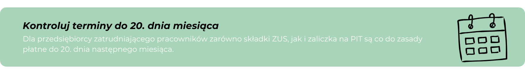 Termin wpłaty zaliczki na PIT co do zasady przypada do 20. dnia następnego miesiąca. To kolejny termin, którego trzeba pilnować w prowadzeniu działalności gospodarczej.