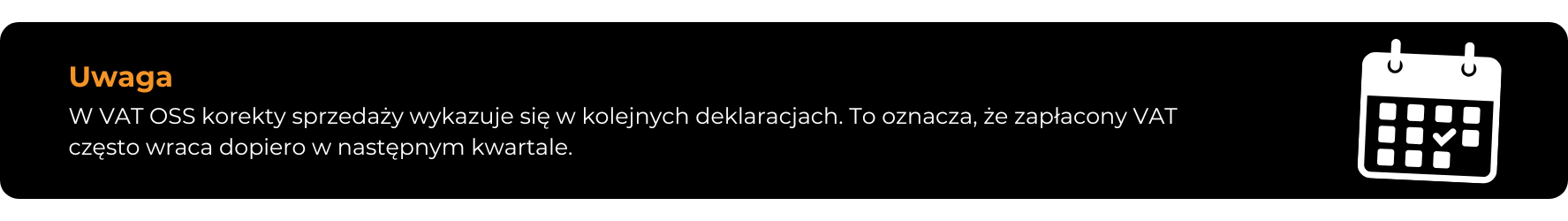 W procedurze VAT OSS ten mechanizm jest jeszcze bardziej widoczny. Korekty sprzedaży, na przykład wynikające ze zwrotów, wykazuje się w kolejnej bieżącej deklaracji OSS, w granicach przewidzianych terminów. Oznacza to, że zapłacony wcześniej VAT nie „wraca” natychmiast, lecz wpływa na rozliczenia dopiero w następnym kwartale. Przy dużej skali sprzedaży sezonowej może to oznaczać istotne kwoty czasowo zamrożone w podatku, dokładnie w momencie, gdy firma najbardziej potrzebuje płynnej gotówki.