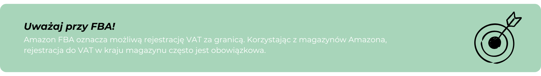 Sprzedaż zagraniczna B2C przez Amazon to kolejne wyzwanie. W całej Unii Europejskiej obowiązuje limit 10 000 euro rocznie, liczony łącznie dla wszystkich krajów UE, dla wszystkich dostaw towarów i usług elektronicznych (tzw. WSTO + TBE). Jeśli go przekroczysz, musisz rozliczać VAT według stawek kraju konsumenta. Żeby nie rejestrować się w każdym państwie oddzielnie, możesz skorzystać z procedury OSS i rozliczać zagraniczny VAT w Polsce.