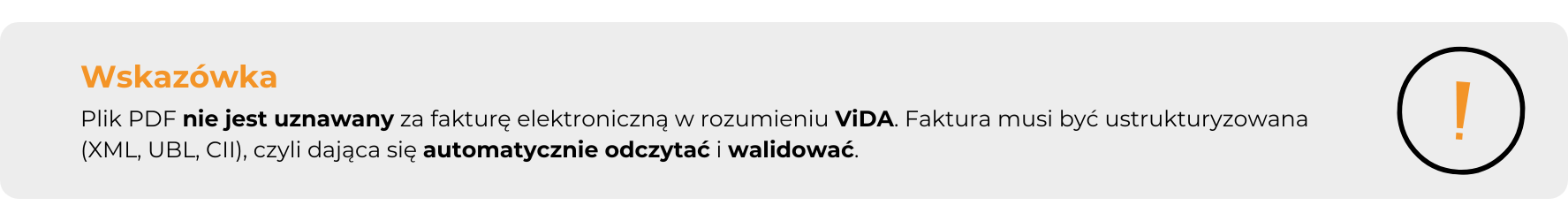 Administracje podatkowe coraz częściej wymagają dostarczenia danych w ich oryginalnym formacie. Zgodnie z EN 16931 i wytycznymi ViDA dane muszą być przechowywane w formie umożliwiającej ponowną walidację, czyli dokładnie w tym samym formacie, w jakim zostały przekazane organom — XML, UBL lub CII. PDF-y mają wartość informacyjną, ale nie dowodową.