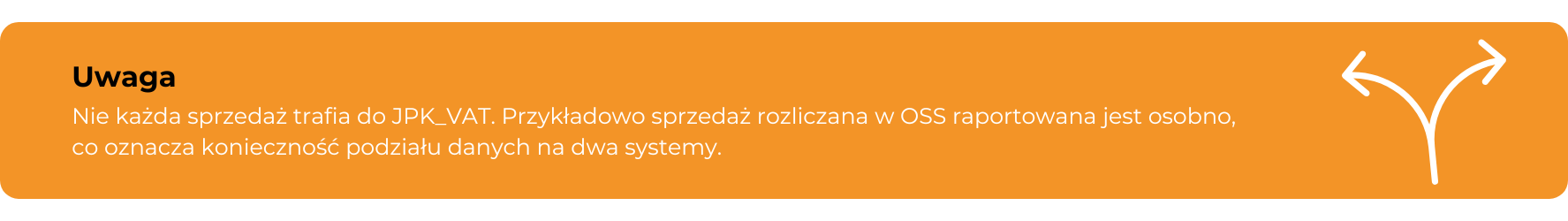 W zależności od sposobu rozliczeń część sprzedaży może być raportowana w JPK, a część poza nim. Na przykład sprzedaż objęta procedurą OSS co do zasady nie jest wykazywana w JPK_V7 jako sprzedaż krajowa, tylko raportowana odrębnie w ramach tej procedury. To bardzo ważne rozróżnienie, bo błędne ujęcie takich transakcji może prowadzić do podwójnego raportowania albo nieprawidłowego rozliczenia.