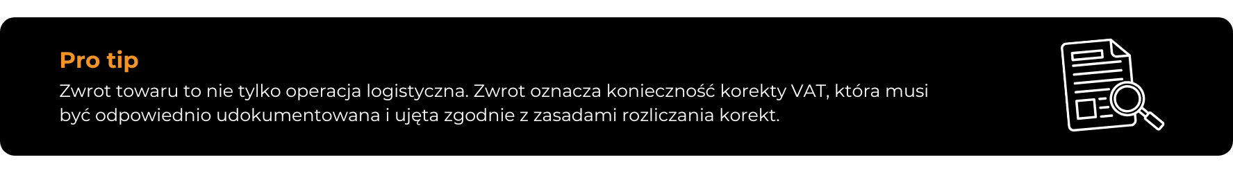 W ciągu dnia pojawiają się również zwroty, anulacje, zmiany zamówień i prośby o wystawienie faktury. Każda z tych sytuacji ma swoje konsekwencje podatkowe. Zwrot towaru oznacza konieczność korekty VAT, ale nie jest to tylko kwestia wystawienia dokumentu. Korekta powinna być ujęta zgodnie z zasadami rozliczania korekt, które wymagają posiadania odpowiedniej dokumentacji potwierdzającej zmianę warunków transakcji, na przykład zwrotu towaru czy uzgodnienia z klientem.