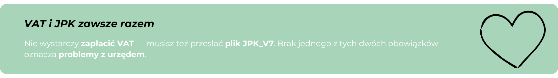 Jeśli jesteś podatnikiem miesięcznym, masz obowiązek co miesiąc, do dwudziestego piątego dnia miesiąca następnego, przesłać JPK_V7M z ewidencją i deklaracją oraz zapłacić VAT.