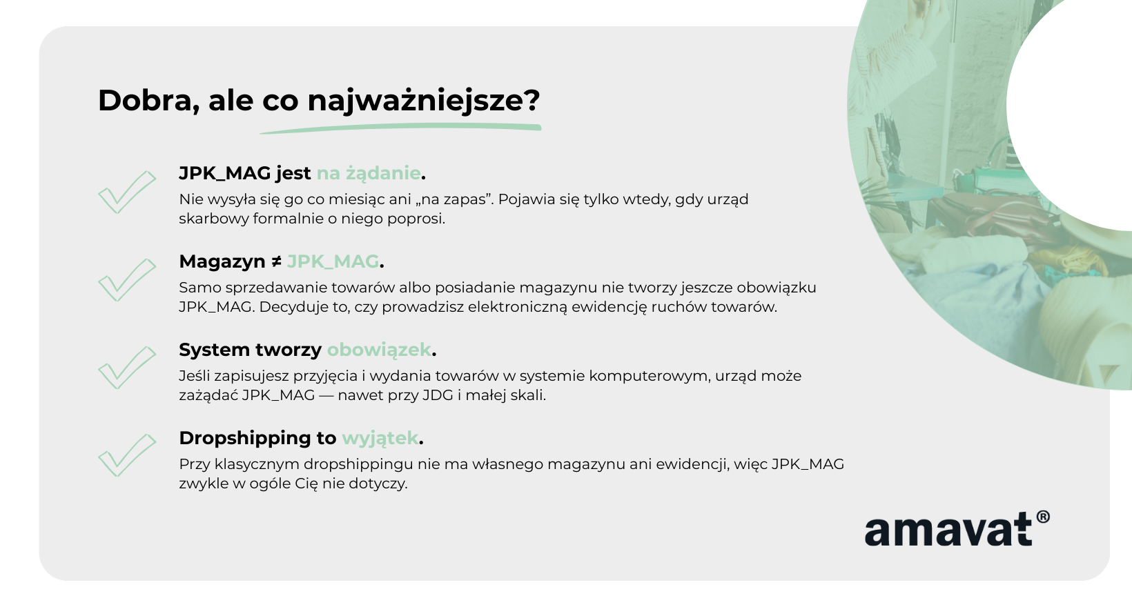 Innymi słowy, kierunek zmian jest jasny, ale zakres JPK_MAG pozostaje taki sam. To narzędzie „na żądanie”, a nie codzienny obowiązek dla każdego sklepu internetowego.