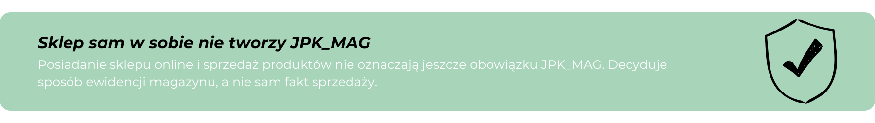 To ważne rozróżnienie, bo pokazuje, że nie każdy e-commerce automatycznie „wpada” w JPK_MAG. Decyduje realny sposób prowadzenia danych, a nie sama skala działalności.