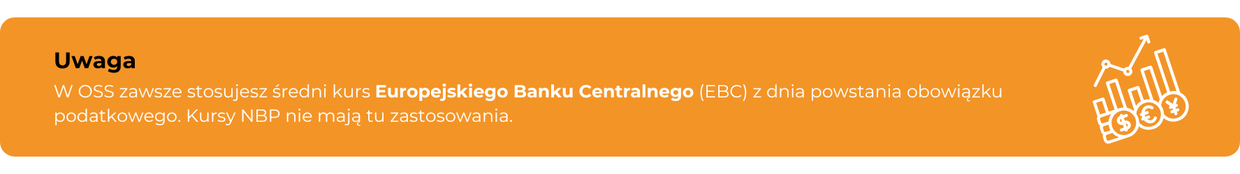 Zgodnie z art. 91 rozporządzenia 282/2011/UE, w OSS stosuje się średni kurs Europejskiego Banku Centralnego (EBC) z dnia powstania obowiązku podatkowego. Kursy NBP nie mają tu zastosowania. Nawet niewielka różnica w kursie może prowadzić do niezgodności między deklaracją a raportem systemowym, a w konsekwencji do wezwania do korekty.