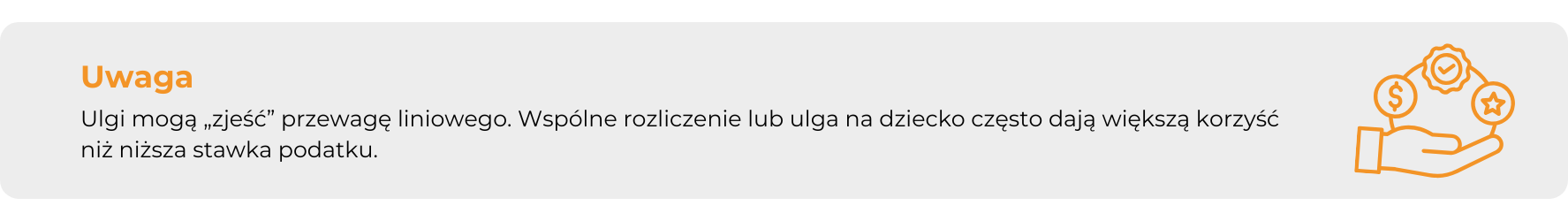 Drugie pytanie dotyczy ulg i preferencji. Jeśli korzystasz ze wspólnego rozliczenia z małżonkiem, ulgi na dziecko albo innych rozwiązań dostępnych na skali, musisz uwzględnić ich realną wartość. To nie są detale, tylko elementy, które często robią największą różnicę w końcowym podatku. Jeśli ich nie wykorzystujesz albo mają niewielki wpływ na Twoje rozliczenie, liniowy zaczyna wyglądać bardziej atrakcyjnie. Jeśli są istotne, decyzja przestaje być oczywista.