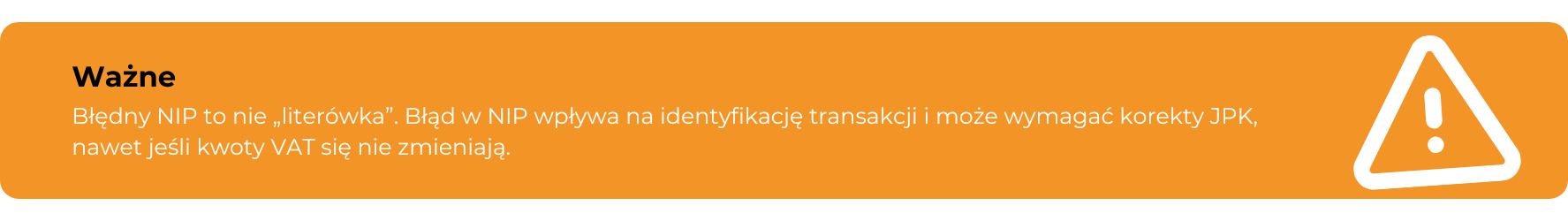 To dobry przykład sytuacji, w której korekta JPK nie dotyka deklaracji, ale nadal jest konieczna, bo chodzi o poprawność danych ewidencyjnych.