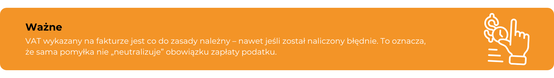 Do tego dochodzi bardzo istotny element wynikający z dyrektywy VAT, który często jest pomijany w praktyce. Podatek wykazany na fakturze jest co do zasady należny niezależnie od tego, czy został prawidłowo obliczony. Oznacza to, że jeśli wystawiłeś fakturę z określoną kwotą VAT, to odpowiadasz za jej rozliczenie, nawet jeśli była ona wynikiem błędnej stawki. To dodatkowo wzmacnia konsekwencje błędów i sprawia, że korekta staje się nie tylko koniecznością, ale wręcz obowiązkiem.