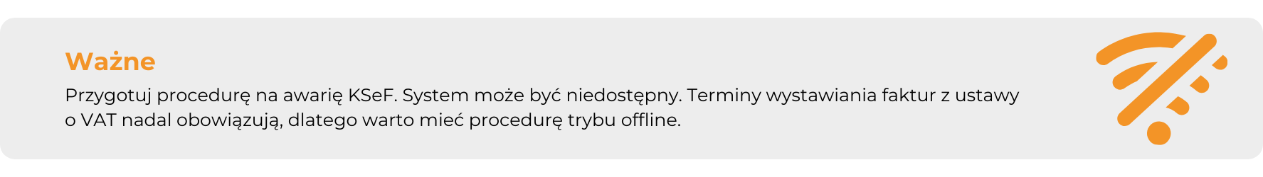 Przepisy przewidują określone tryby działania w sytuacjach awaryjnych, w tym możliwość wystawienia faktury w trybie offline i jej późniejszego przesłania do systemu. Jeżeli firma nie ma procedury na taką sytuację, może dojść do opóźnień i problemów z terminowością.