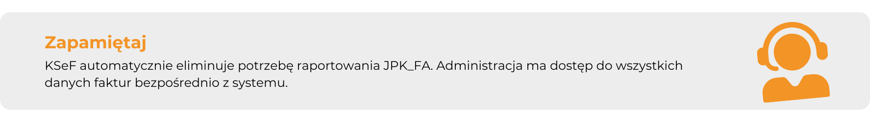 Wprowadzenie KSeF sprawia, że raport JPK_FA przestaje być potrzebny. System pełni rolę źródła danych o fakturach, więc dodatkowe raportowanie staje się zbędne. Dla przedsiębiorców jest to istotne uproszczenie — zamiast wysyłać osobny plik, przekazywać korekty i dbać o zgodność danych, wszystko odbywa się automatycznie w momencie wystawienia faktury w KSeF. Oszczędza to czas, redukuje ryzyko błędów i eliminuje dublowanie informacji, które wcześniej były przesyłane w dwóch różnych formach.