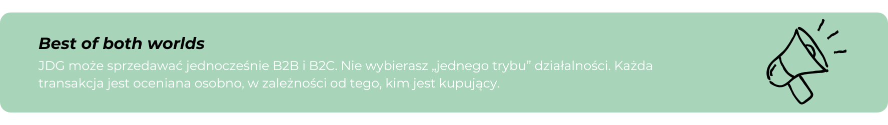 Warto też jasno powiedzieć jedną rzecz. To Ty decydujesz, do kogo kierujesz swoją ofertę i jak ustawiasz proces zakupowy, ale o tym, czy dana transakcja jest B2B czy B2C, decyduje status nabywcy w konkretnym zakupie. Innymi słowy, nie wybierasz „na stałe”, że jesteś B2B albo B2C. Każda sprzedaż jest oceniana osobno.
