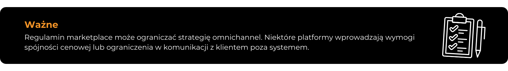 Przy takim podejściu należy jednak uwzględniać regulaminy marketplace, które mogą wprowadzać ograniczenia dotyczące polityki cenowej lub komunikacji z klientem. Niektóre platformy wymagają spójności cenowej albo ograniczają możliwość przekierowywania klientów do własnych kanałów sprzedaży. Strategia omnichannel wymaga więc nie tylko spójności marketingowej, ale również analizy warunków współpracy z operatorem.