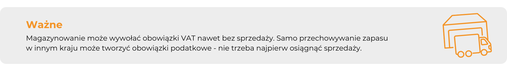 To dla wielu sprzedawców moment zaskoczenia, bo w e-commerce łatwo myśleć kategorią obrotu. Pojawia się pytanie: skoro jeszcze nie mam tam dużej sprzedaży, to może nie potrzebuję VAT. Problem polega na tym, że w przypadku magazynowania taka logika co do zasady nie działa. Obowiązek może wynikać z samej obecności towaru, a nie z przekroczenia określonego progu sprzedażowego.