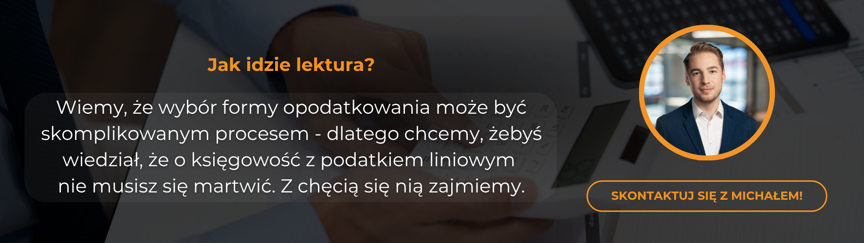 Warto również pamiętać, że utrata prawa do podatku liniowego może nastąpić automatycznie w trakcie roku podatkowego. Dzieje się tak wtedy, gdy przedsiębiorca wykonuje takie same czynności dla byłego lub obecnego pracodawcy, jakie wcześniej wykonywał na etacie. W takiej sytuacji cały rok podatkowy jest rozliczany według skali, a liniowy PIT na kolejny rok nie przedłuża się automatycznie — wymagałby ponownego zgłoszenia.
