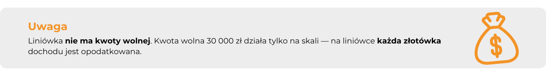 To właśnie w tym przedziale dochodów liniówka najczęściej spełnia swoją podstawową rolę — zmniejsza obciążenia podatkowe bez konieczności żonglowania ulgami i bez pilnowania progów.