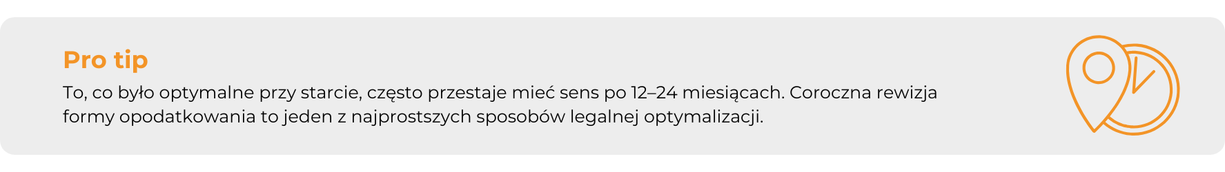 Jednym z najczęściej pomijanych elementów planowania podatkowego jest regularna zmiana perspektywy. Forma opodatkowania wybrana na starcie działalności bardzo często przestaje być optymalna po roku lub dwóch. Dochody rosną, zmienia się struktura kosztów, pojawiają się nowe kanały sprzedaży i nowe obowiązki.