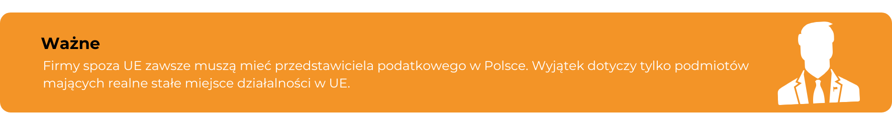 Przedstawiciel podatkowy nie jest dla firm unijnych obowiązkowy. Może być ustanowiony dobrowolnie, gdy przedsiębiorca chce uprościć kontakt z administracją podatkową lub kiedy działalność ma charakter transgraniczny z wieloma obowiązkami ewidencyjnymi. Nie jest to jednak wymóg narzucony przepisami, lecz decyzja biznesowa.