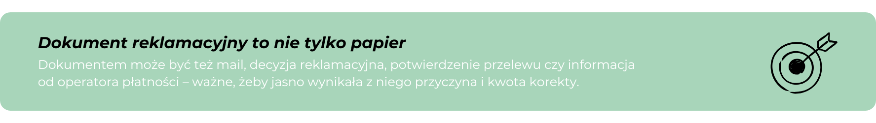 Dokumentacja przy chargebackach jest skromniejsza niż przy klasycznych reklamacjach. Zazwyczaj przedsiębiorca dysponuje wyciągiem bankowym pokazującym obciążenie oraz komunikatem lub pismem od operatora płatności. Czasami dochodzi decyzja końcowa o przegraniu lub wygraniu sporu. Dopiero komplet tych informacji pozwala bezpiecznie rozliczyć chargeback w księgowości działalności gospodarczej.