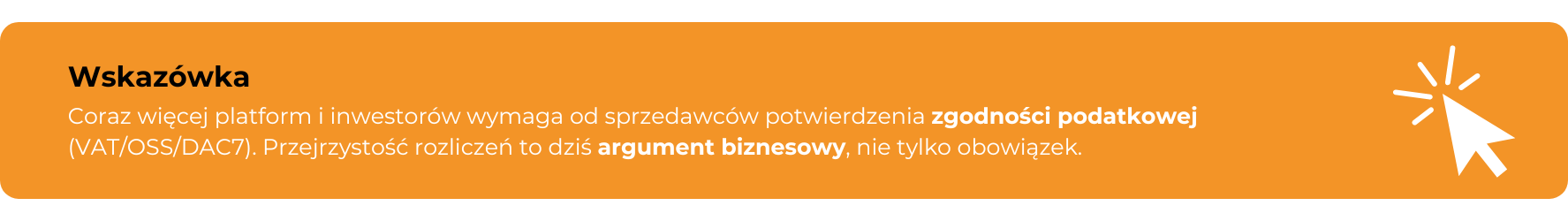 W praktyce oznacza to, że każdy sprzedawca działający na marketplace musi zrozumieć dwa poziomy ryzyka: własne obowiązki podatkowe oraz obowiązki i błędy operatora, które mogą pośrednio dotknąć jego biznes. Jeśli platforma błędnie rozliczy VAT, sprzedaż może zostać zakwestionowana przez fiskusa. Jeśli stawka VAT nie zostanie zaktualizowana po zmianie przepisów w innym kraju, to sprzedawca – a nie platforma – poniesie odpowiedzialność. A jeśli przedsiębiorca nie wdroży odpowiedniej procedury OSS lub przekroczy próg sprzedaży w innym kraju Unii, zaległości mogą sięgnąć wielu miesięcy wstecz.