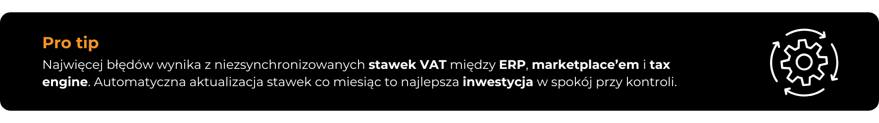 W kontekście bieżących zmian warto podkreślić, że w Rumunii od 1 sierpnia 2025 r. podstawowa stawka VAT wynosi 21%, a stawki obniżone 5% i 9% zostały skonsolidowane do 11%. Dla polskich sprzedawców obecnych na eMAG, Amazonie czy Kaufland Global Marketplace oznacza to konieczność sprawdzenia, czy nowa stawka została prawidłowo zsynchronizowana w każdej warstwie systemu. Praktyczny nawyk to comiesięczny mini-przegląd stawek w krajach docelowych i porównanie ich z oficjalnymi źródłami Komisji Europejskiej, takimi jak VAT Rates Database / TEDB. Warto też wprowadzić prostą zasadę: każda zmiana legislacyjna trafia najpierw do ERP, a następnie – przez automatyczną synchronizację – do wszystkich kanałów sprzedaży i tax engine, z testem regresyjnym cenników na kilku przykładowych koszykach.