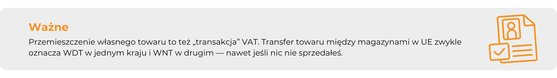Towar może trafić do magazynu w Niemczech, zostać przeniesiony do Francji, a następnie sprzedany klientowi w Hiszpanii. Każde takie przemieszczenie zwykle stanowi odrębne zdarzenie podatkowe i musi być prawidłowo ujęte w rozliczeniach. W praktyce oznacza to konieczność posiadania lokalnych numerów VAT w krajach, w których magazynujesz towar, składania lokalnych deklaracji oraz prawidłowego rozpoznawania transakcji takich jak przemieszczenia własnych towarów czy sprzedaż wewnątrzwspólnotowa.