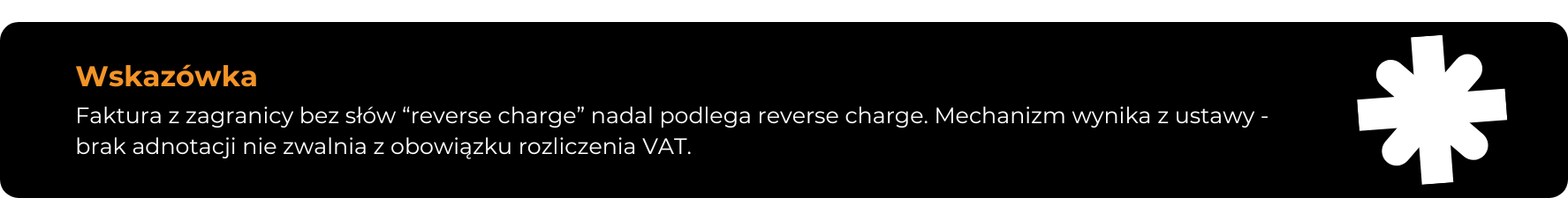 Z perspektywy polskiego VAT-u to jednak nie ma znaczenia. Faktura z USA, Kanady czy Wielkiej Brytanii może nawet nie zawierać żadnej adnotacji dotyczącej reverse charge — a i tak powstaje import usług, jeśli miejscem opodatkowania jest Polska. Liczy się to, że przedsiębiorca nabywa usługę na firmę od kontrahenta z innego kraju i wykorzystuje ją w działalności gospodarczej. Obowiązek podatkowy wynika z ustawy, nie z treści faktury.