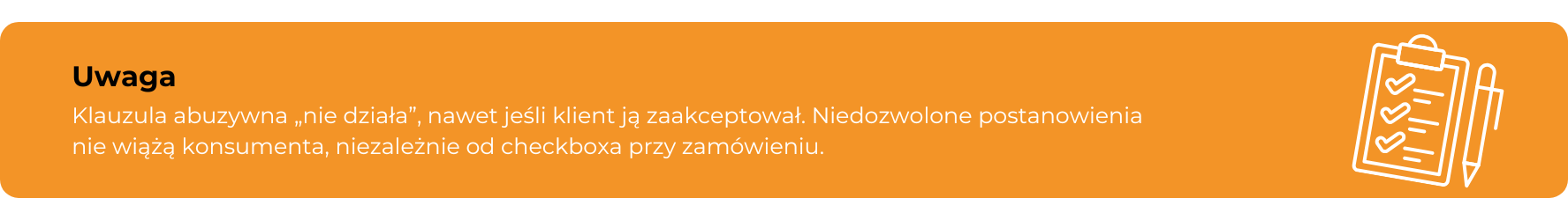W praktyce oznacza to, że nie możesz wprowadzać zapisów ograniczających ustawowe prawa konsumenta, przerzucających na niego nieuzasadnione obowiązki albo tworzących istotną nierównowagę między stronami. Jeżeli takie postanowienia znajdą się w regulaminie, nie wiążą konsumenta, nawet jeśli formalnie zostały zaakceptowane w procesie zakupowym. Jednocześnie sama umowa co do zasady pozostaje w mocy w pozostałym zakresie.