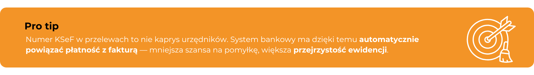 Kolejny etap tego obowiązku wejdzie dopiero pierwszego stycznia 2027 r. W tym momencie podawanie numeru KSeF stanie się nie tylko częścią ewidencji, ale również elementem każdego przelewu pomiędzy podatnikami, w tym płatności z mechanizmem podzielonej płatności. W praktyce oznacza to pełne powiązanie płatności z konkretną fakturą, co znacznie utrudni wykonywanie przelewów „na oko”, a zautomatyzuje weryfikację transakcji.