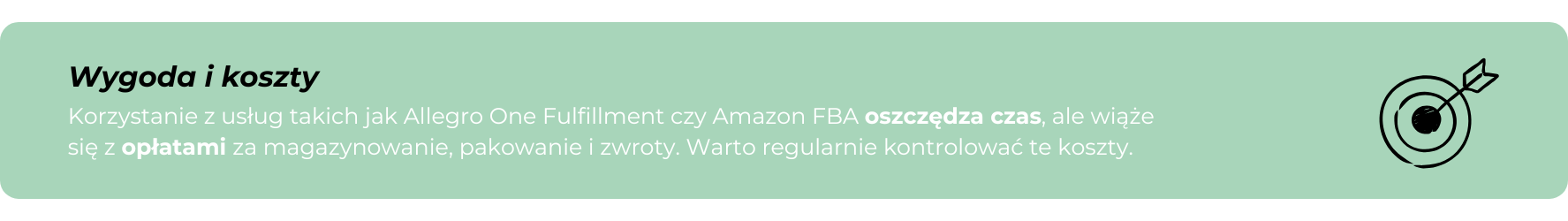 Jeśli korzystasz z usług fulfillmentu, np. Allegro One Fulfillment albo Amazon FBA, płacisz za przechowywanie produktów oraz za obsługę zamówień. Koszty są naliczane według objętości i czasu przechowywania, a dodatkowo pojawiają się opłaty za kompletowanie, pakowanie, etykietowanie czy dodatkowe czynności jak obsługa zwrotów.