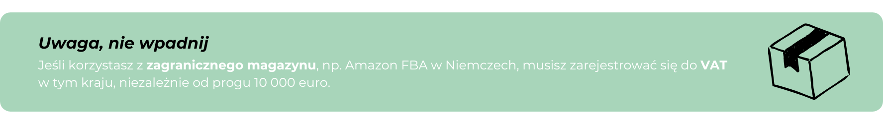 Dla jasności: niektóre platformy i/lub modele logistyczne, zwłaszcza fulfillment w innych krajach UE, de facto wymagają bycia czynnym podatnikiem VAT. To częste, gdy korzystasz z zagranicznych magazynów lub wysyłasz z kilku krajów.